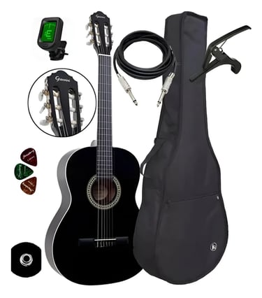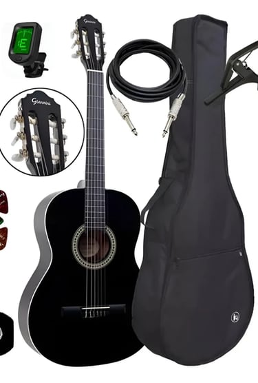 Kit Violão Elétrico Giannini Nylon N14 Natural Completo Cor Black