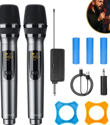 Microfone sem Fio Duplo UHF Profissional Preto Recarregável Led